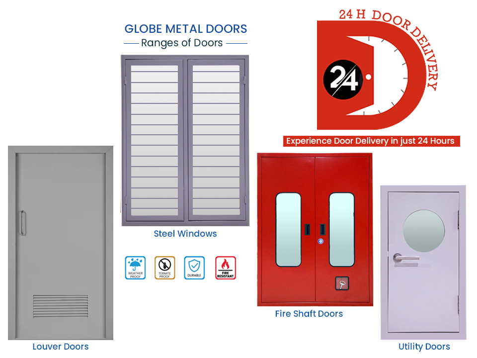As a leading manufacturer of steel doors in Chennai, Globe Metal Doors plays an important role in manufacturing, supplying and installation of Steel Doors, Fire Doors, Cleanroom Doors, Acoustic Doors, Fully Glazed Doors, Shaft Doors and Louver Doors with integrated solutions.